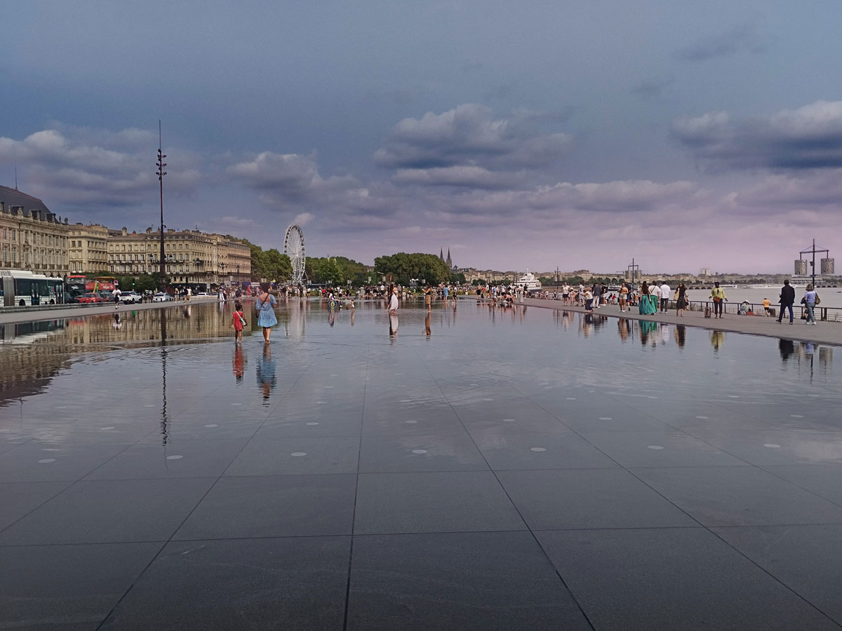 Frente a él, en el muelle del río Garona, se encuentra una de las atracciones más populares de Burdeos: ¡el Miroir d'eau! Este moderno monumento, construido en 2006, es el estanque reflectante más grande del mundo. Su superficie, hecha de granito azul cubierto de agua, refleja la Place de la Bourse del siglo XVIII.